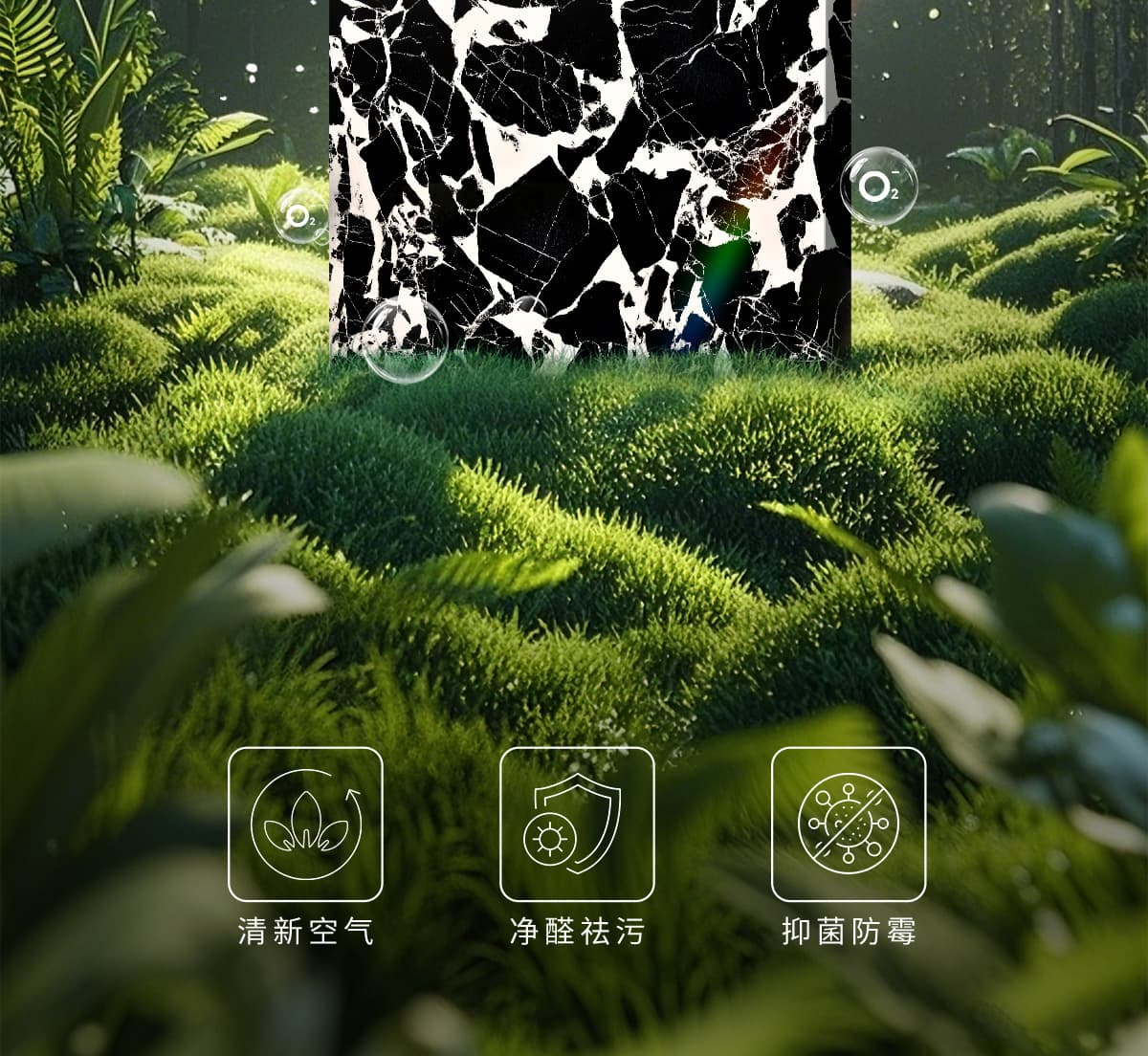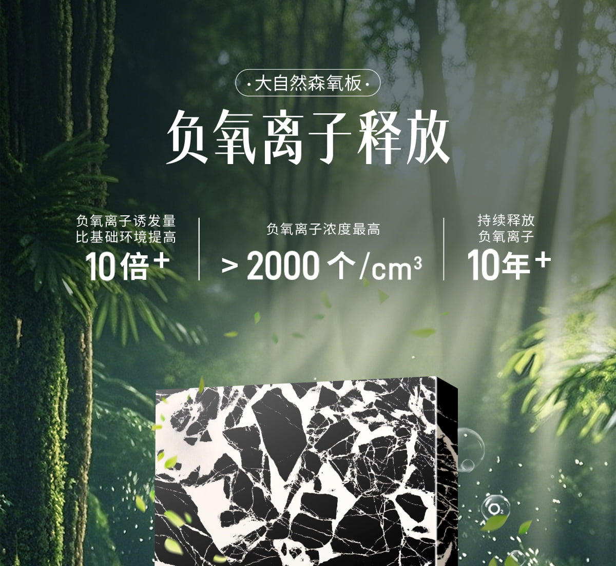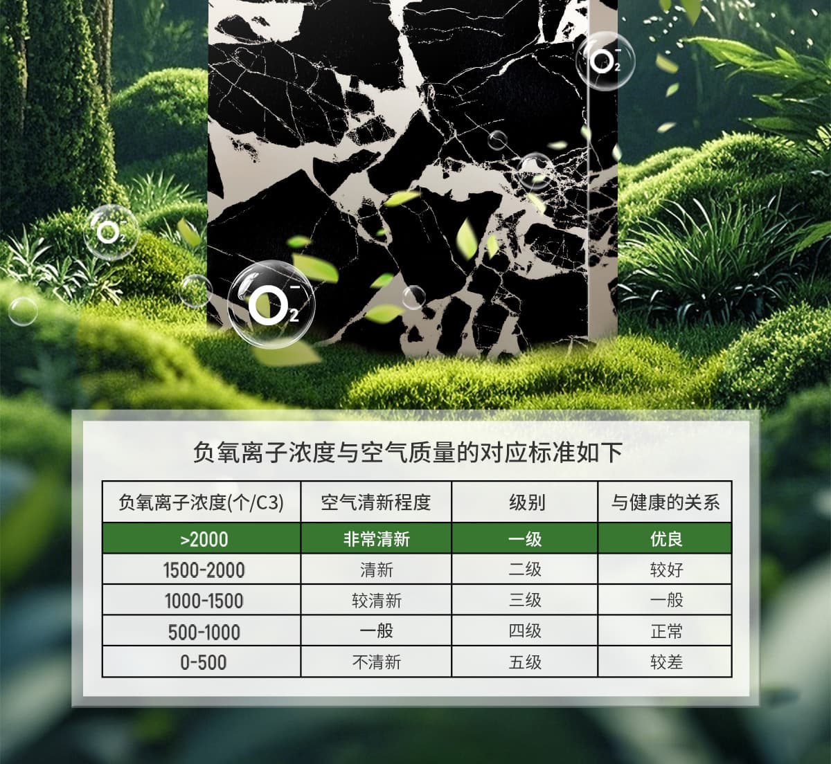 誘發空氣負離子量 比基礎環境提高10倍+
